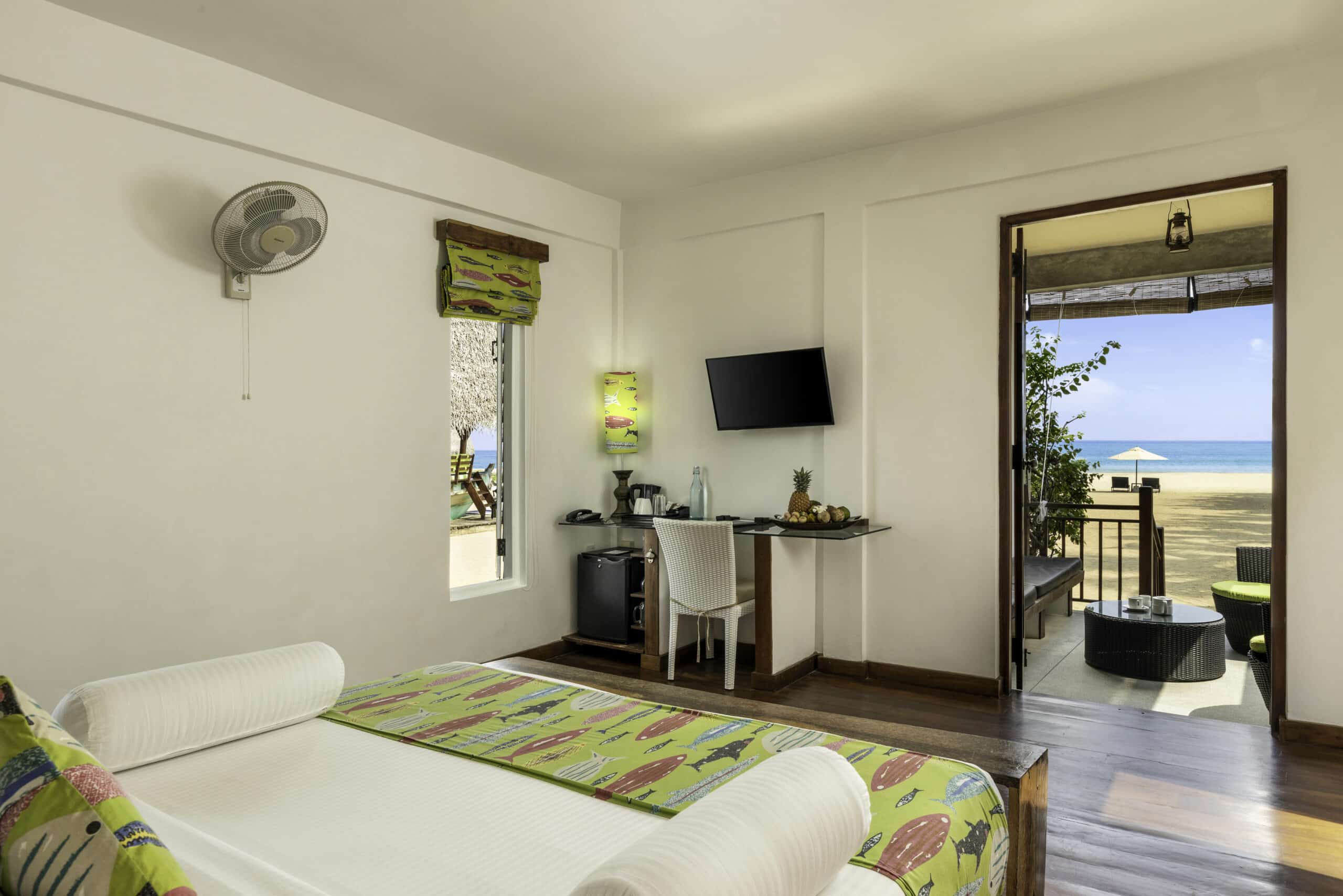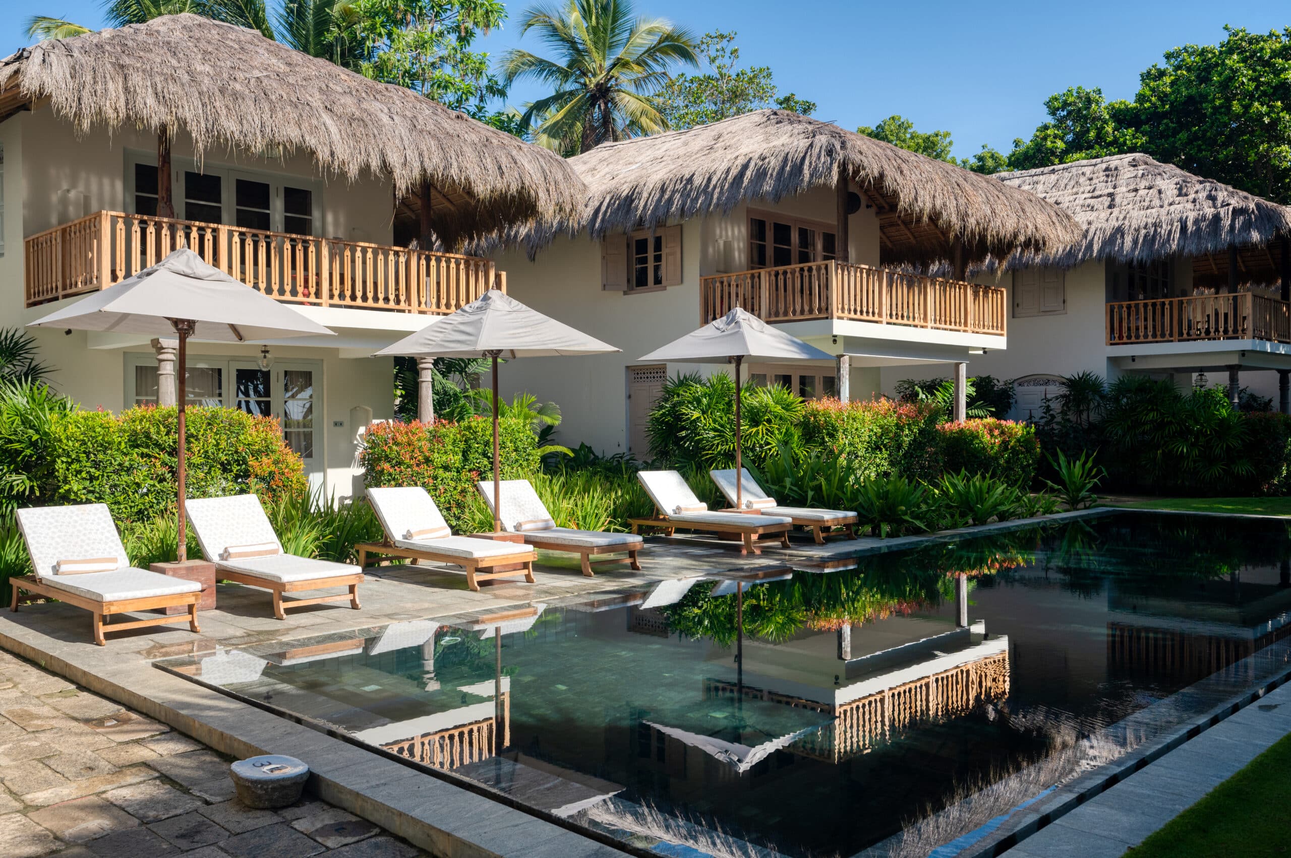 Inspired by a traditional Sri Lankan fishing village, the resort is all thatched wooden chalets crafted from recycled wood and palm leaves, facing the turquoise ocean and white sands as far as the eye can see.